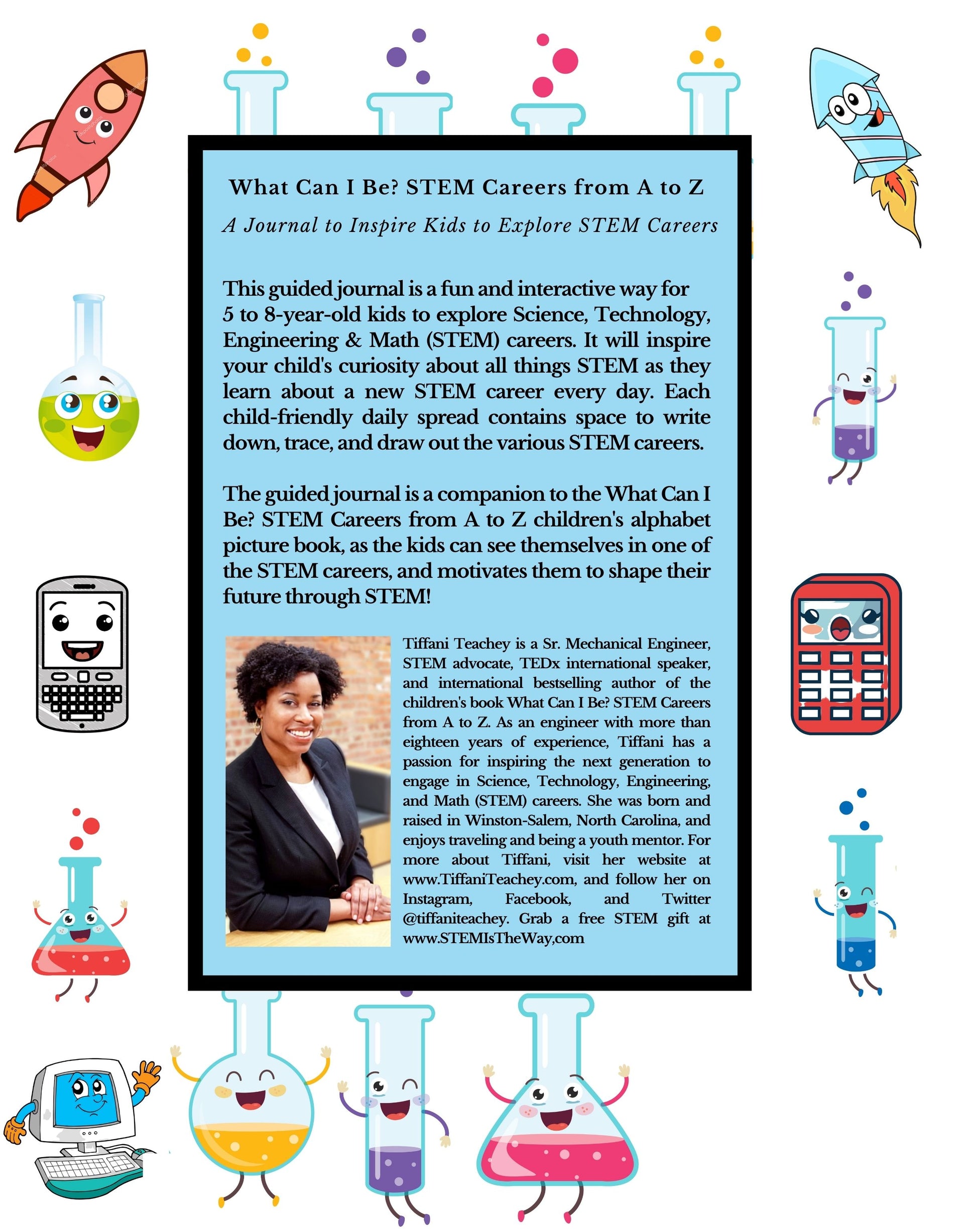 The guided journal is a companion to the What Can I Be? STEM Careers from A to Z children's alphabet picture book, as the kids can see themselves in one of the STEM careers, and motivates them to shape their future through STEM!