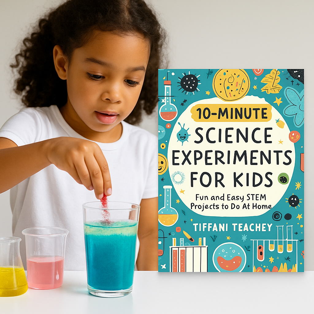 "10-Minute Science Experiments for Kids: Fun and Easy STEM Projects to Do at Home" is your gateway to sparking curiosity and fostering a love for science in kids aged 5 to 10! Bursting with 35 exciting and quick experiments, this book transforms your home into a hands-on learning lab. Watch an egg magically float, create fizzing apple slices, turn cabbage juice into a color-changing pH indicator, or make butter in a jar, all with simple household items. Explore the power of air with a self-inflating balloon and balloon-powered car, make marshmallows explode, create an elephant toothpaste eruption, or turn a lemon into a fizzy volcano. Discover color explosions in milk, write secret messages with lemon juice, and even make homemade ice cream in a bag! Each experiment takes 10 minutes, teaching key STEM concepts while creating lasting memories. Perfect for budding scientists, this book makes learning fun, easy, and incredibly engaging!