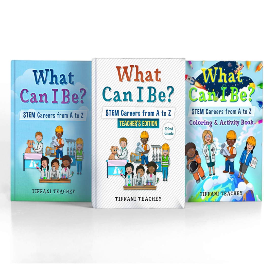 This bundle package includes the What Can I Be? STEM Careers from to Z Children's Book, Coloring & Activity Book, and Teacher's Edition. Great for Home school and Classroom reading and activities for children 5-8 years old to learn about STEM!